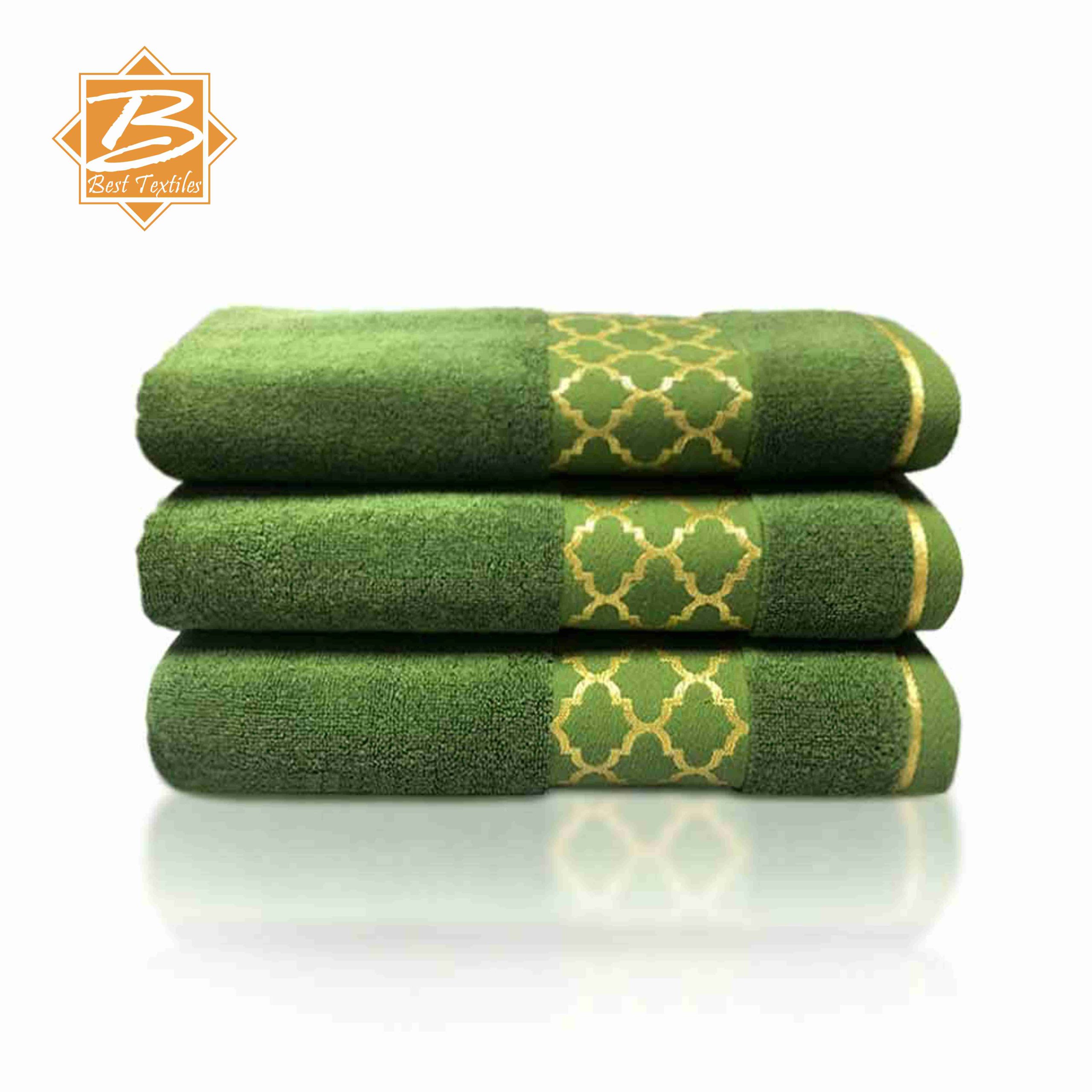 These terry towel golden yarn borders are made with different qualities that provide adequate comfort and snugness. The fine quality terry fabric offers a cozy and refreshing feel while using it. Also, the fancy golden yarn border adds a decorative and opulent sensation to the bathroom. It is enriched with snug composition and exquisite style that splendidly tenfold the bathing experience.